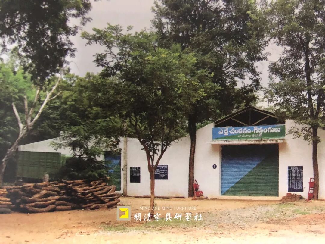 安德拉邦蒂鲁帕蒂地林业局仓库外所堆放的N级紫檀