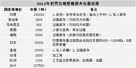 2013年世界各地紫檀原木存量估算