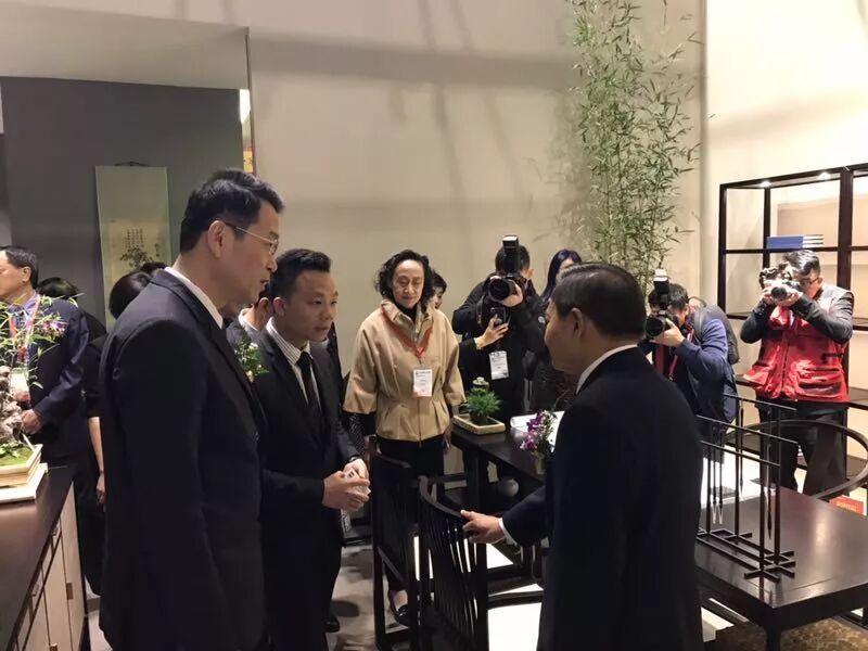 中国轻工业联合会张崇和会长,中国家具协会徐祥楠理事长、张冰冰副会长兼秘书长、上海市文化创意产业办公室陈跃华主任,北京家具行业协会任淑琴副会长兼秘书长,上海市家具协会高伟会长等行业领导莅临曲美万物展位参观指导。