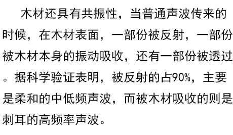 因此,在我们的生活空间中,适当应用木材,可令我们在听觉上感受到和谐的同时,还会与木头产生一种共振。也因为这个原因,木材常被用作建筑声学的大厅、音乐厅和录音室等。