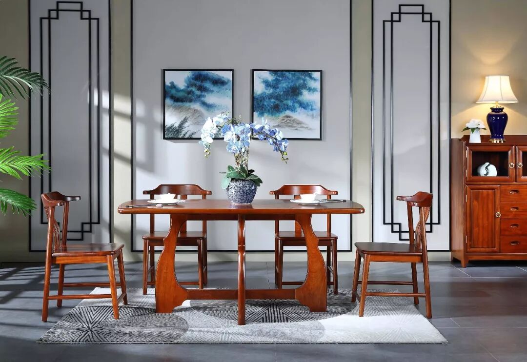 明式家具主体艺术风格简约、自然,线条流畅,可搭配淡雅类地毯。