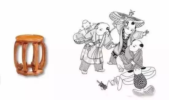 在笔者看来,鼓凳,确实就像一个活泼好动的小胖孩。它矮墩墩,圆鼓鼓的造型,就像年画中扎着两小辫、小圆脸、小胖身材的孩儿;家具上雕刻的花纹与镶嵌的装饰物,就像小胖孩身上穿的可爱、美丽的衣裳;就连它的稳定性不好、容易倾倒,都有一种小孩顽皮打闹,不慎摔倒,然后瘪着嘴坐在地上委屈大哭的既视感。