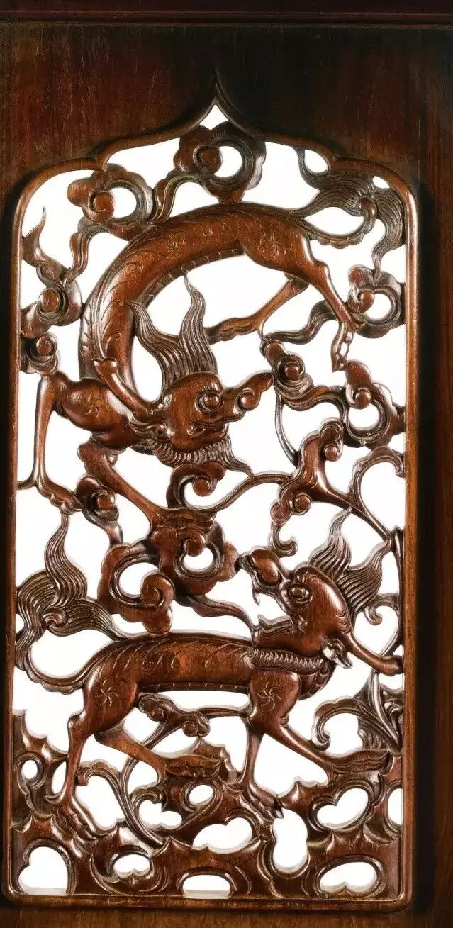 构图比例的协调性。家具上,大到顶箱柜门,小到椅背透雕,图案的大小比例、位置关系都很重要。位置关系一定要符合“黄金分割”的美学定律,这样才看着舒适和谐。