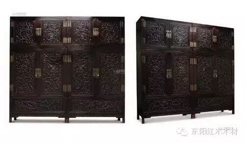 2013年6月4日北京保利,清代紫檀高浮雕九龙西番莲纹顶箱式大四件柜