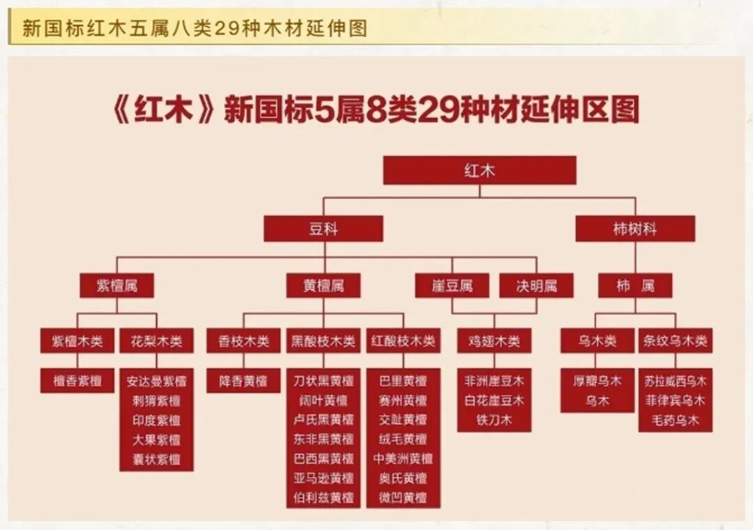 在家具用材方面,材质从贵到贱的排列次序是“一黄”(黄花梨)、“二黑”(紫檀)、“三红”(老红木、鸡翅木、铁力木、新花梨等)、“四白”(楠木、榉木、樟木、榆木等)。此外,红木类家具优于白木类家具。