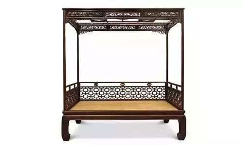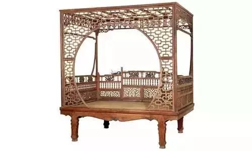 旧式大床,前面有碧纱厨及踏步。