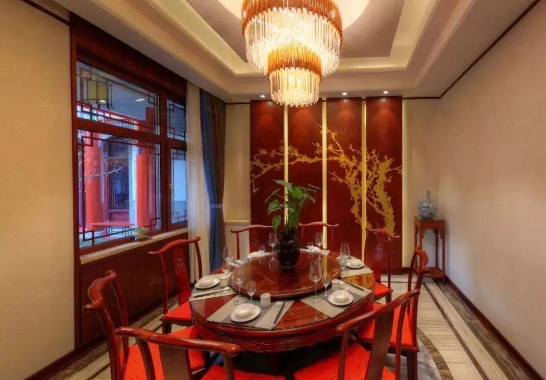 中国家庭的餐厅是家人们团聚交流情感的地方,而圆桌不仅符合中国人大家庭“围坐”的饮食习惯,也蕴含着“团圆”之意。