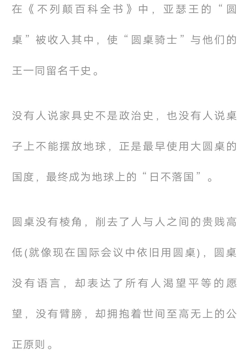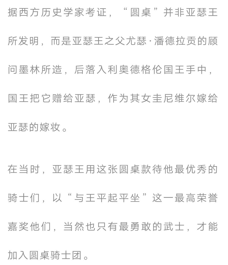而在西方,圆桌文明的起源就是亚瑟王那张普通却有大意义的“圆桌”。