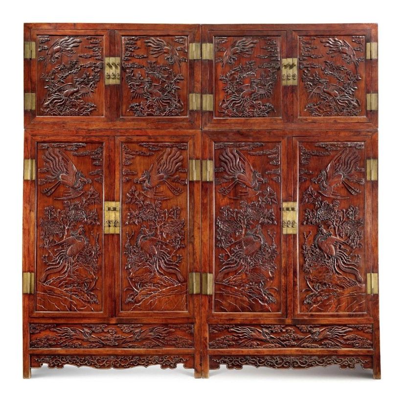 清康熙 御制黄花梨鸾凤牡丹纹大顶箱柜成对