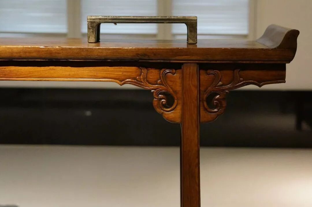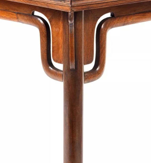 以苏作家具为例,插肩榫酒桌或条案牙条上锼出壸门曲线并沿边起阳线,腿足沿边也要起阳线和牙条连接起来,仿佛一气呵成,形成完整而优美的轮廓。