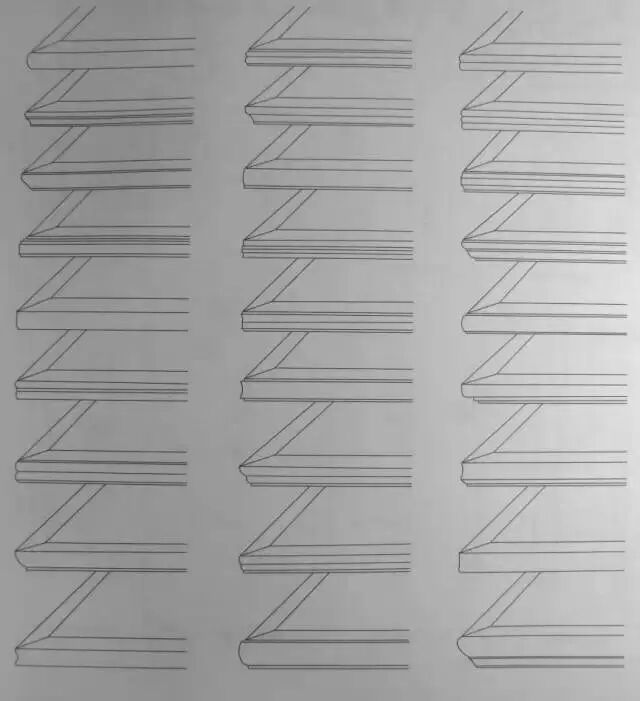 捏角线:指方形材或长方形材在边棱上打折的线形。