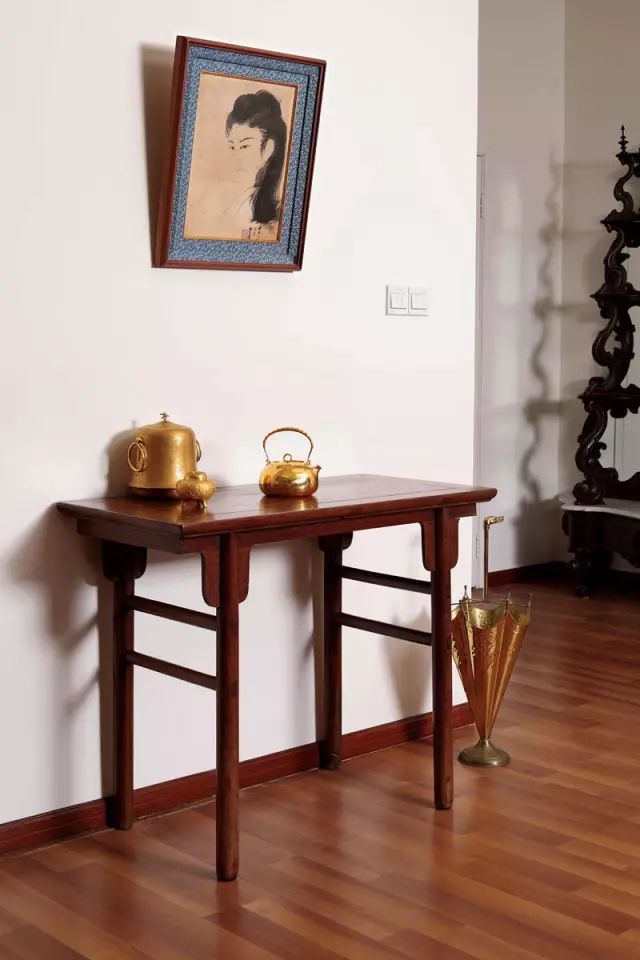 传统红木家具还喜欢用绦环板装饰,案、几、墩的束腰上往往装绦环板。