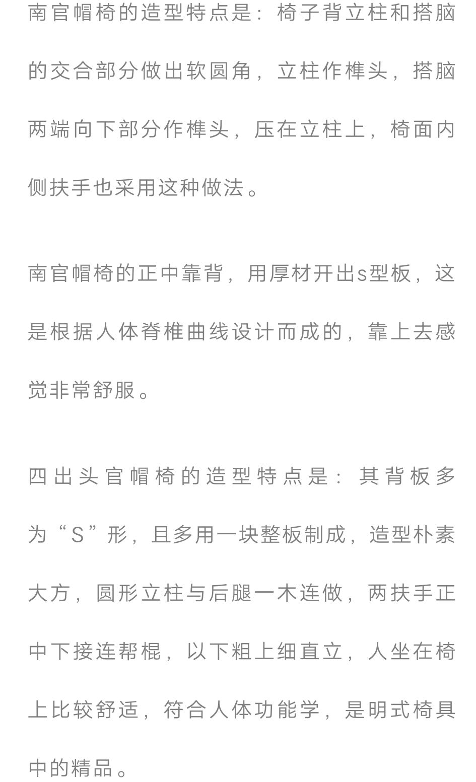 四出头官帽椅搭脑的两头、扶手的两头,这四个位置都伸出一个头。
