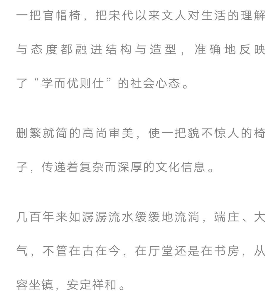 在中国古典家具的椅子中,官帽椅以其夸张舒展、体形高大的特点而著称,是明式家具中的经典类型之—。