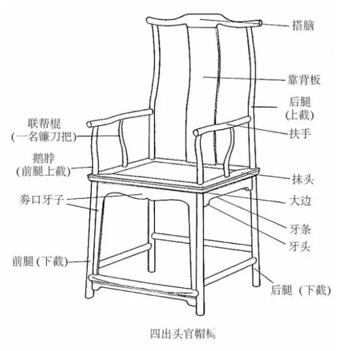 官帽椅是宋代定型的一种椅具,有南官帽椅和四出头官帽椅之分。
