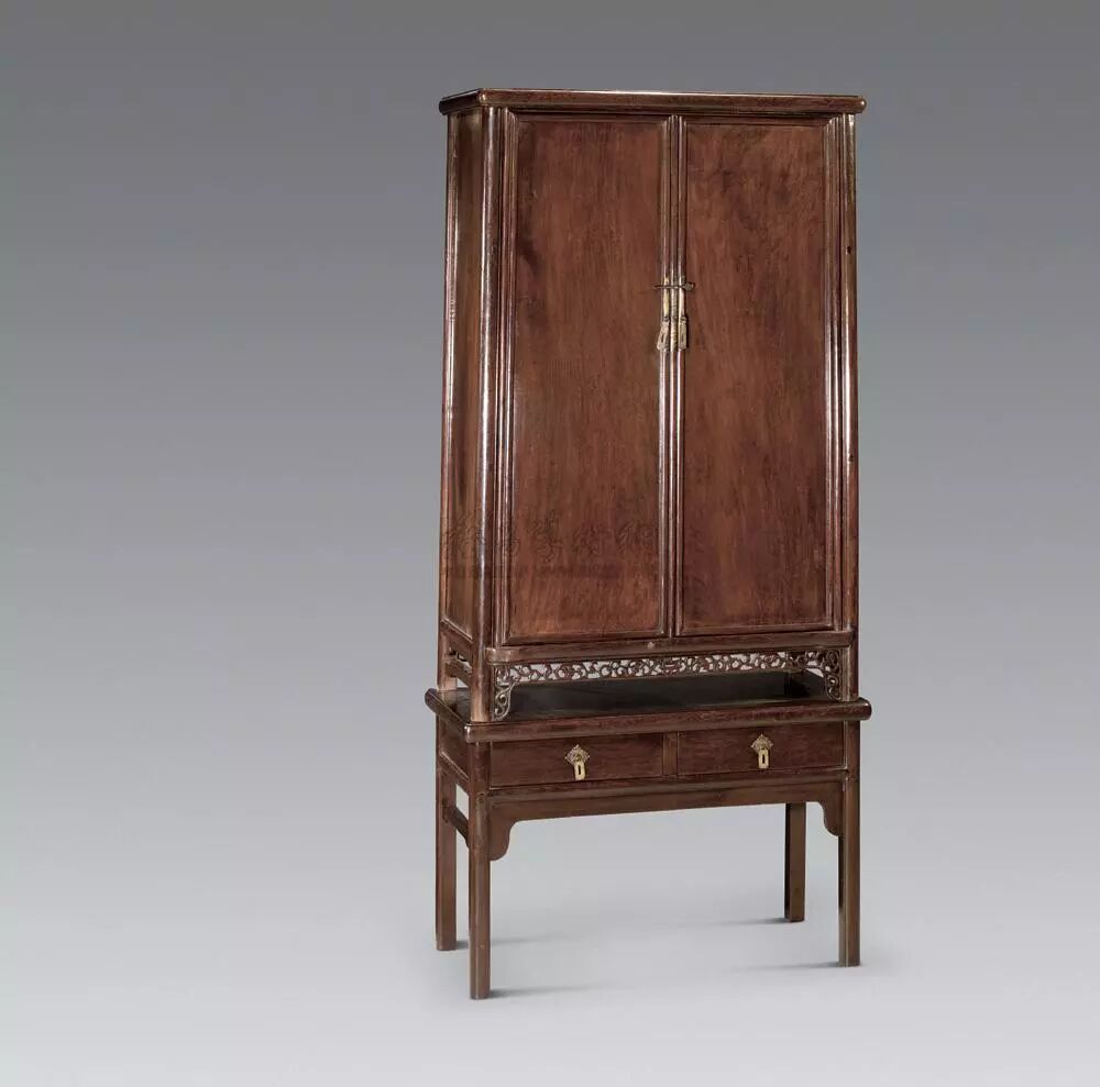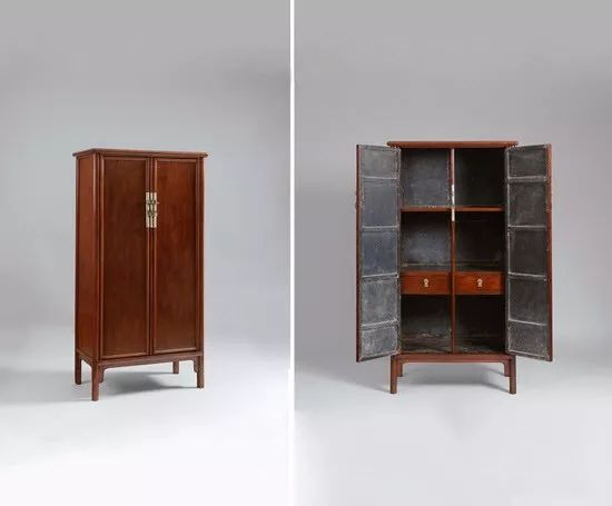 在明清家具中,圆角柜可以说达到了简约的极致,形式简单,结构科学,任何一个部件,都无法再做“减法”:否则将影响其整体结构。简单造型的背后,往往是复杂的工序,因此,圆角柜“外简内繁”的潜在设计和结构,极具文化底蕴和内涵,受到无数收藏家的青睐。
