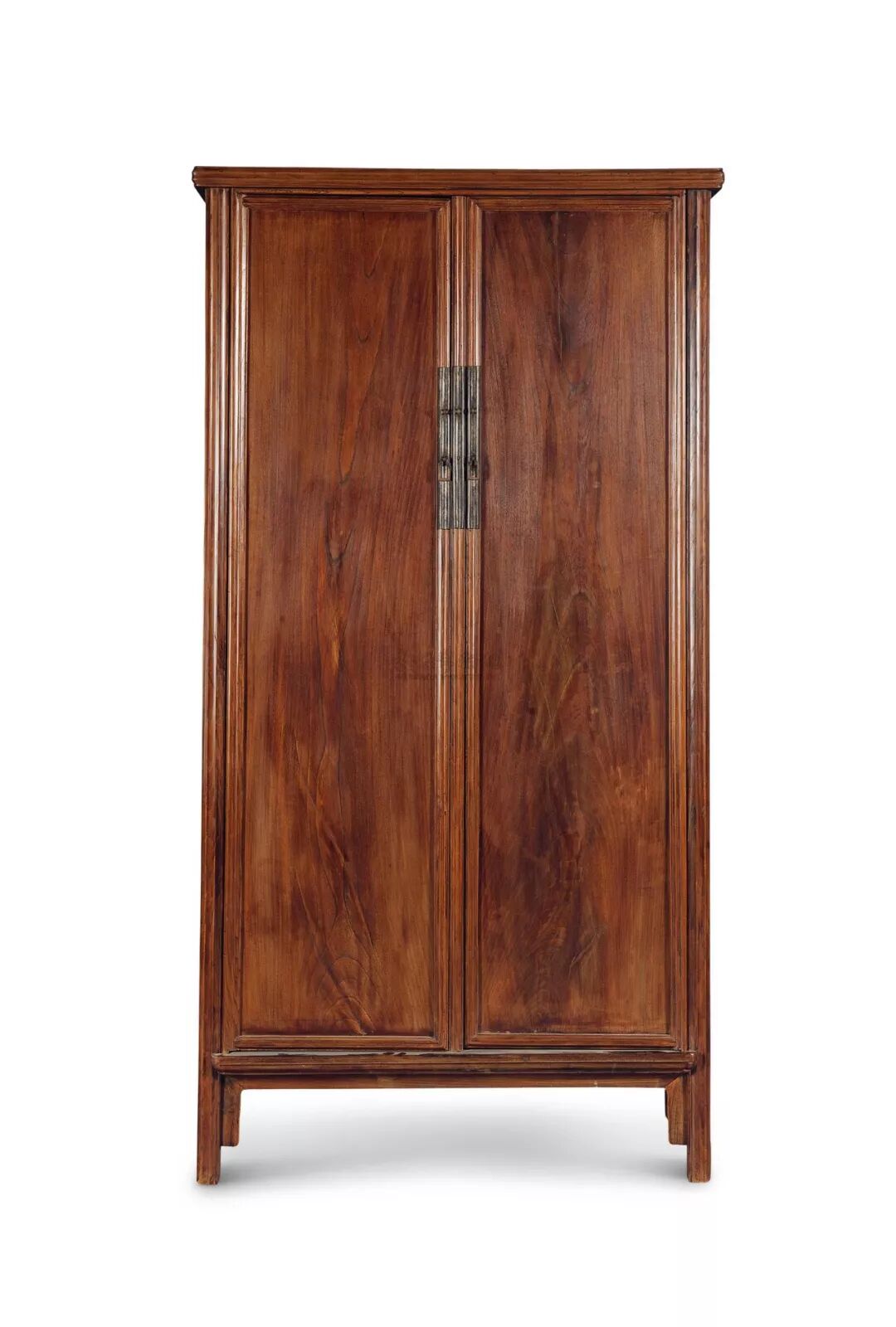 圆角柜取材天然,强调美学的观赏性和线条的高纵感,纹理遵循流畅舒展。其面板花纹是整个圆角柜的关键所在,追求中国山水画的意境,有的像山水,有的像瀑布,还有的像面条,因此行家也常称圆角柜为“面条柜”。