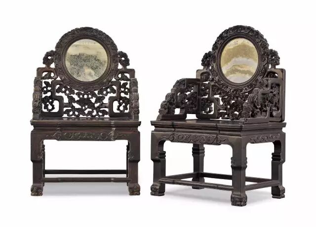红木嵌大理石灵芝纹太师椅