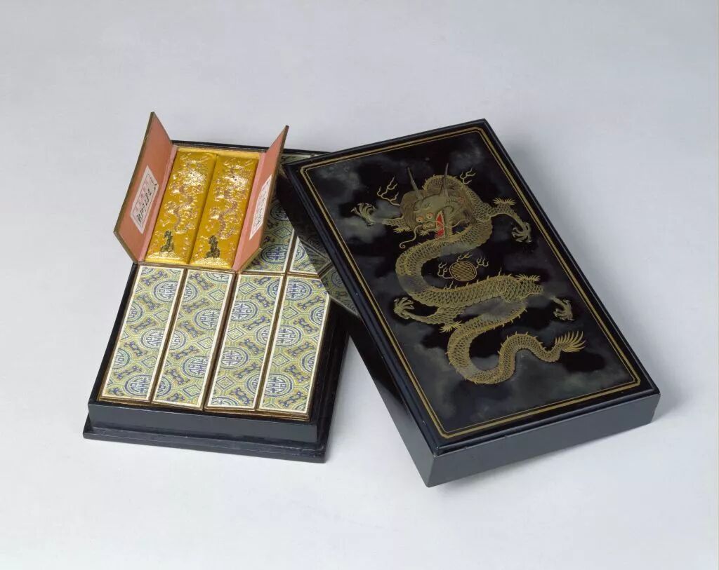 墨匣,也叫墨盒,体积比砚匣小,古时墨水一经制成,不好好保存容易影响使用品质,墨盒就是用来安置不用的墨块的。