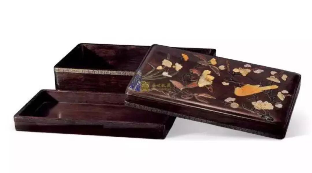 砚匣,用来安置平时不用的砚台,多用黄花梨、紫檀等木材制成,匣上常刻铭文,表明使用者。