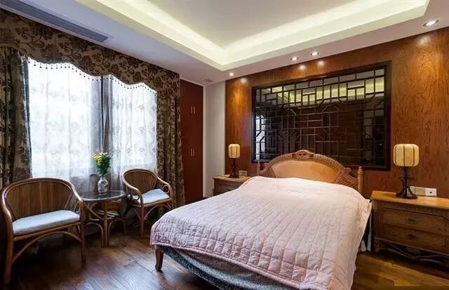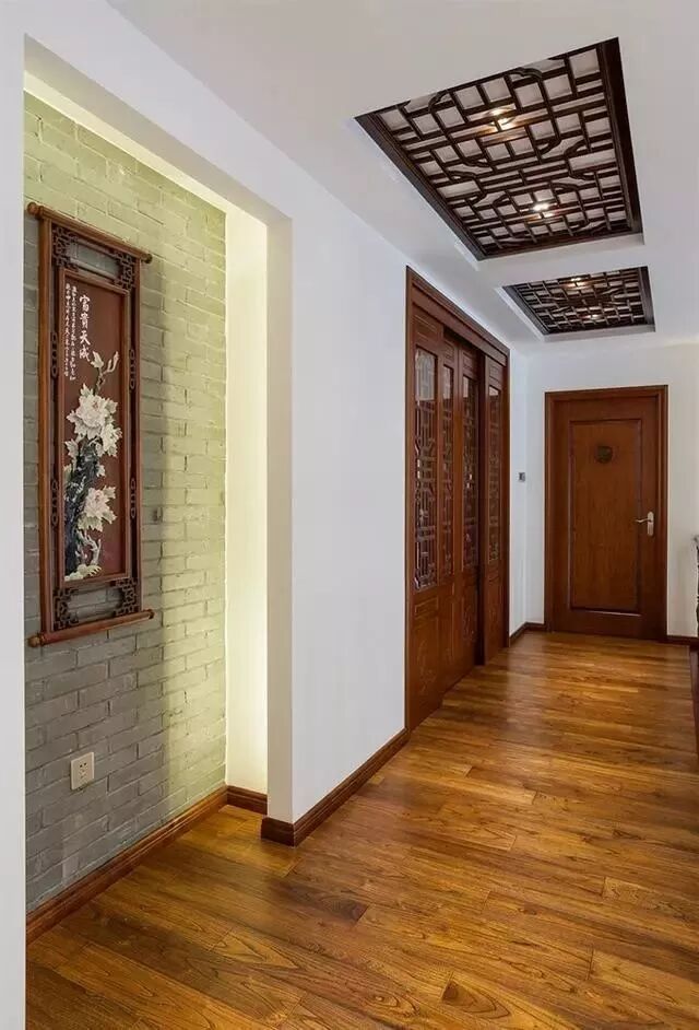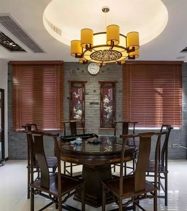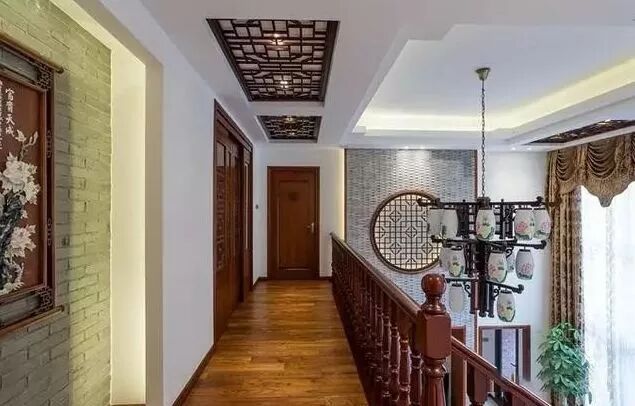 因为也是复式挑空,专门定制的灯具,墙面上的孔雀图。
