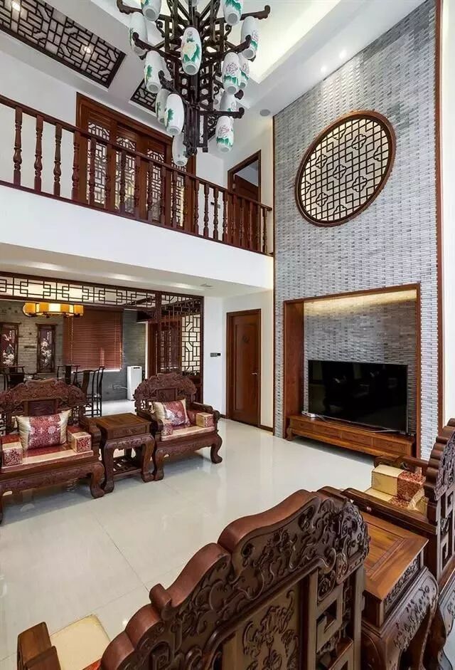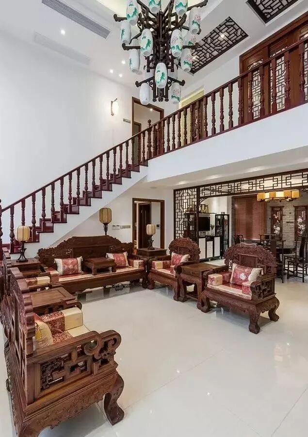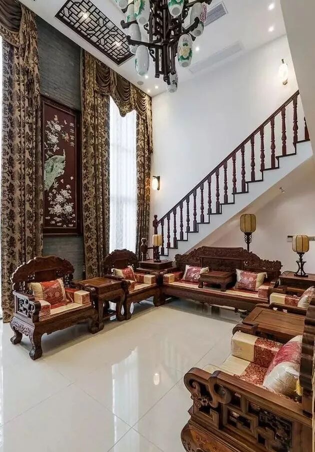 客厅的地面很简单,用瓷砖整体铺,家具也是传统中式。