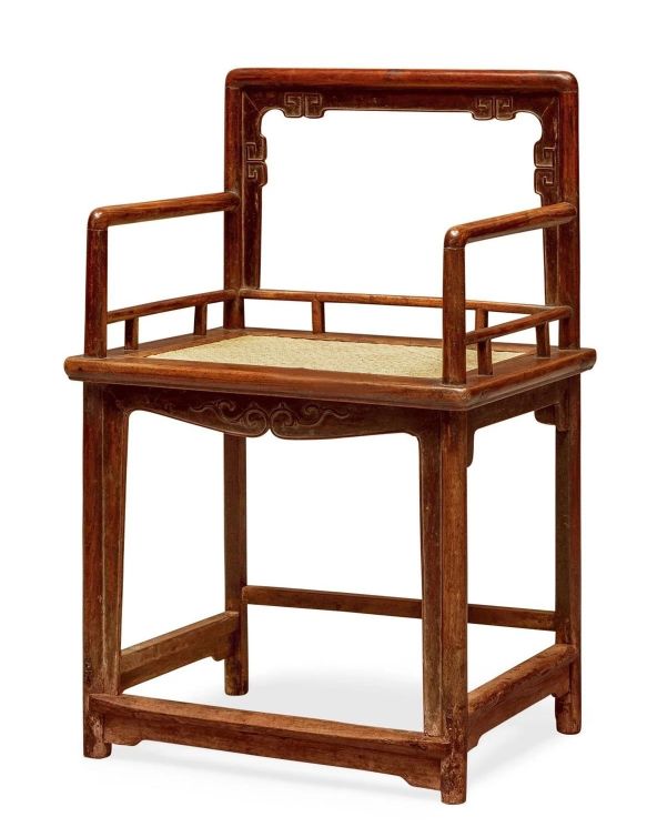 圈椅,有着“天圆地方”的外型,上圆下方,圈是圆,座是方。