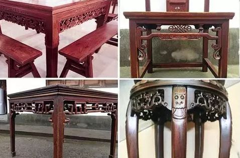 八仙人物的图案常雕刻在神龛和屏风的顶帽上,雕成色垫分别镶于桌子的罗锅枨上,叫八仙桌。
