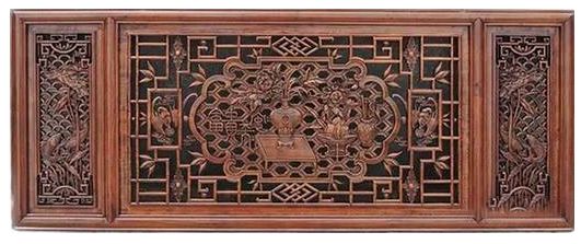 明间图纹中有,“一品清廉”、“莲花挂头”、“本固枝荣”等。多用于家具镶板上的图案雕刻或漆饰。