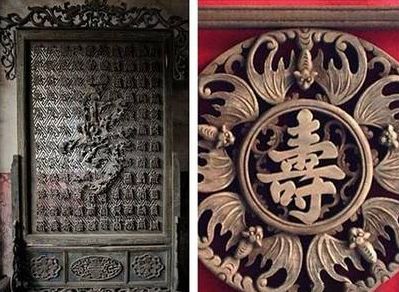 福禄寿喜的文字及祥云图纹:文字多以喜、寿、富、万字形成其图纹,多表现与座屏、挂屏、椅子靠背等地方。