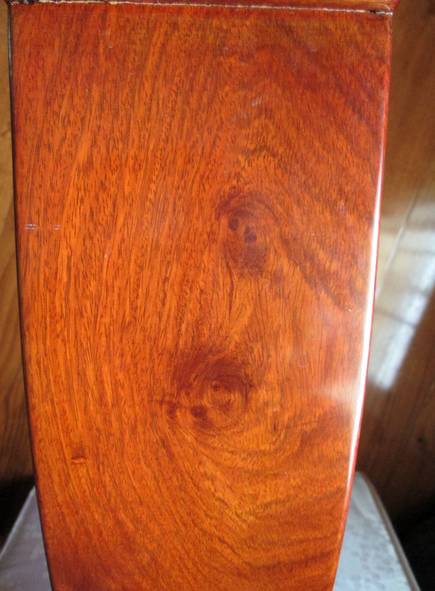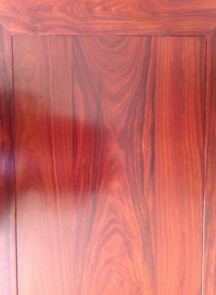 E . 红木开裂后的处理。红木除海南黄花梨木性极为稳定不易开裂外,其它红木均易开裂,如果在半年至一年内没有大的裂纹,有较多的细裂属于正常现象,也是家具适应环境的过程。等1年后,可以用深色的腻子仔细填抹缝隙,然后打磨平整,上遍清漆即可恢复原貌。