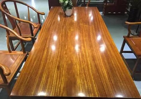 奥坎木心材呈黄、橙褐色,呈深浅相交条纹,边心材区别明显,均匀;木材具光泽,实物比照片有质感;无特殊气味;间杂黄金线,色泽庄重耐看,价格实惠,喜者众多。