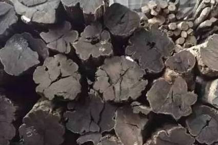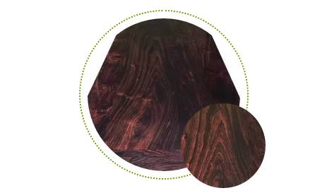 3、心材深紫褐色至近黑色、带黑条纹。其切面滑润,棕眼稀少,肌理紧密,油质厚重。
