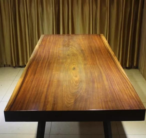 但这种极品在市场上是少之又少的,而且并不是所有的实木大板保留自然边后都能和树心相映生辉。一些崇尚自然理念,追求天然环保的客户当然是绝对支持购买这种自然边的大板桌了。