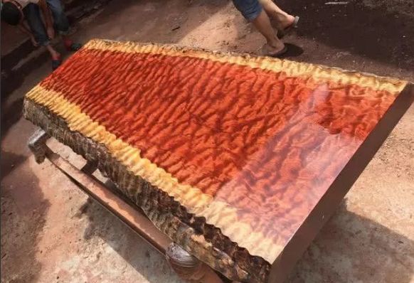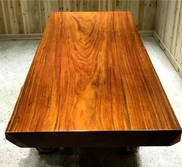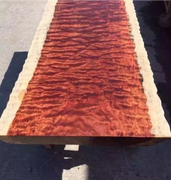自然边,既是一棵树切成片之后不对边形进行处理,保留树木原有的树皮纹理,其中,极品的巴花大板大多都会保留自然边,因其自然边在经过处理出厂后能有温润如玉的色泽,更有甚者能有金丝出现,何其美观!