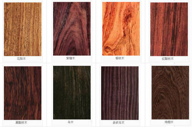 木纹的差别表现在木材的匀称度上,也就是人们通常说的色差。要选就选色差小的红木。如果再有一些很美的花纹,则更加精美。如泰国、柬埔寨出产的红酸枝木就多为黄红相间的花纹,而在老挝和越南的就多为黑紫相间的花纹,这样的颜色差异就导致后者比前者要高出近一倍的价格。