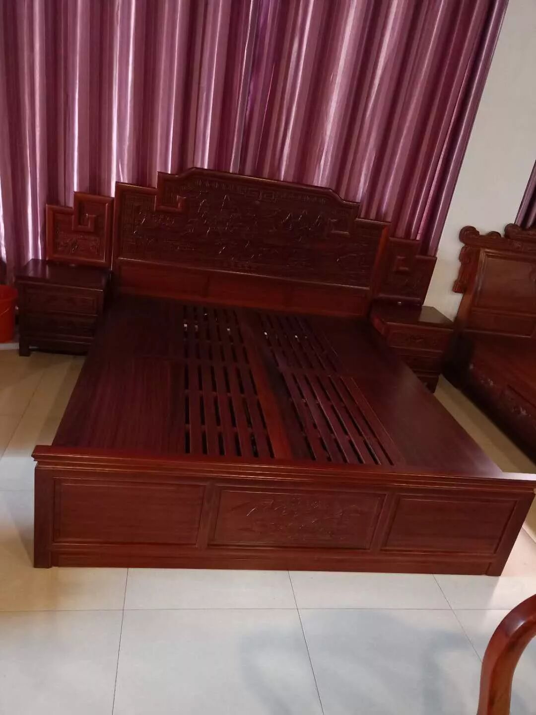 红花梨山水画大床