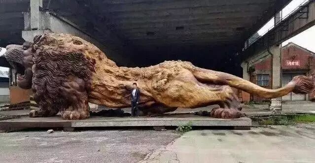全世界最大的狮子木雕,长14.5米、宽4米、高5米,重达39吨。狮子乃丛林之王,有着高贵的气质,这可不是一般人可以驾驭的,这是身份的象征。