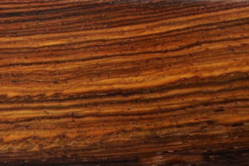 ▲黑酸枝——心材为紫黑、深紫和红褐色,带黑色条纹,打磨后平整润滑,具有醇厚含蓄的美感,有醋酸味。