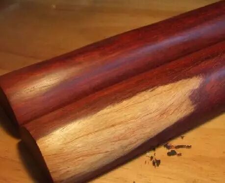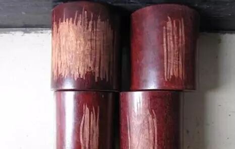 最近市场上看到一种新的紫檀作假方式,那才叫触目惊心,连一些老鸟都中招了。一位算是玩紫檀老鸟的朋友在网上入手了一组小叶紫檀对笔筒,到手验货后发现,觉得从比重、纹理什么的来看,确认真货无疑。后来,也玩了一段时间,又想请一位紫檀雕刻行家给加工,改一下笔筒的形状,才最终暴露问题。网购的朋友们,可一定得当心了。