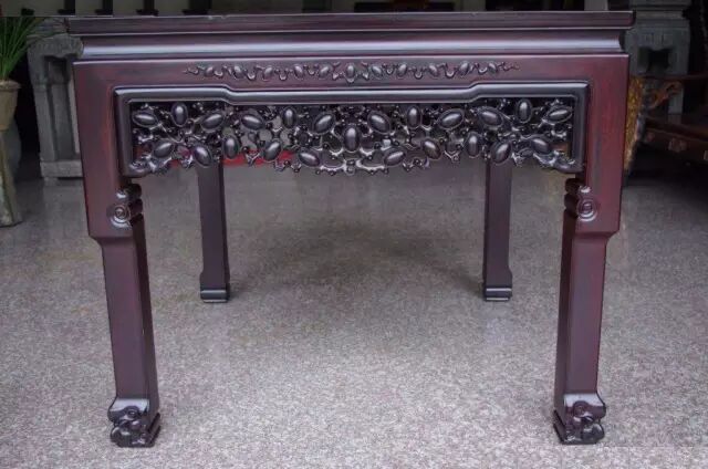 市场上的红木家具分“全红木”和“部分红木”两种,而前者的价格又比后者高出1.5倍左右,因此,检测时可以将桌椅等小件家具翻过来倒置,观察其内部和隐蔽部位所用的木材与主结构所用的是完全相同还是带有边材。