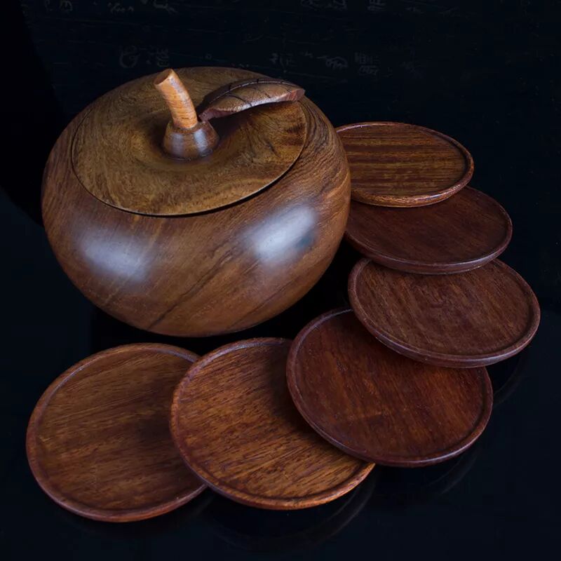 缅甸花梨木苹果杯垫【6片装】