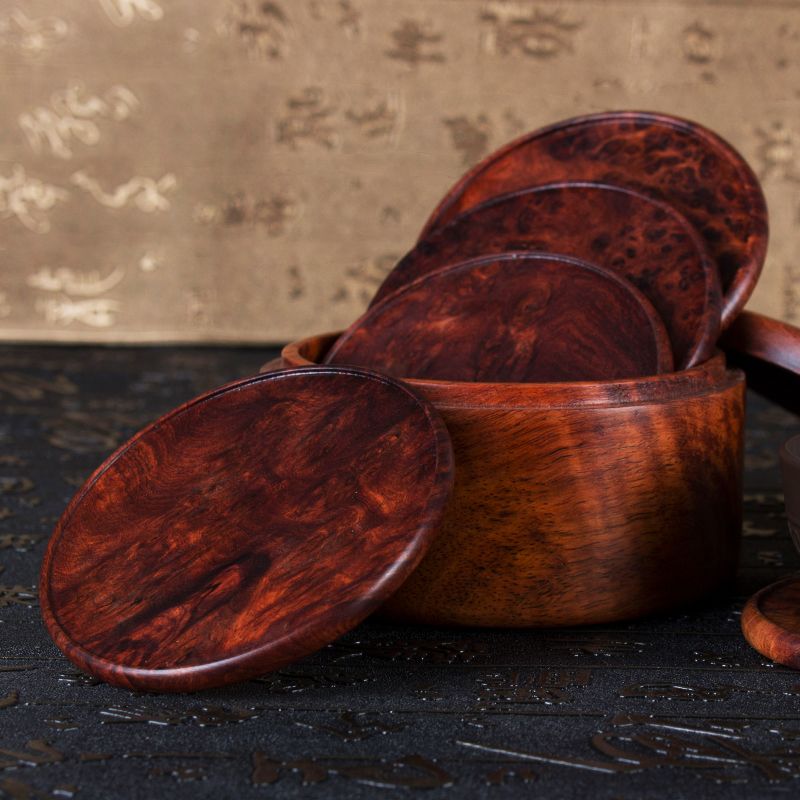 缅甸花梨树瘤杯垫【6个套】