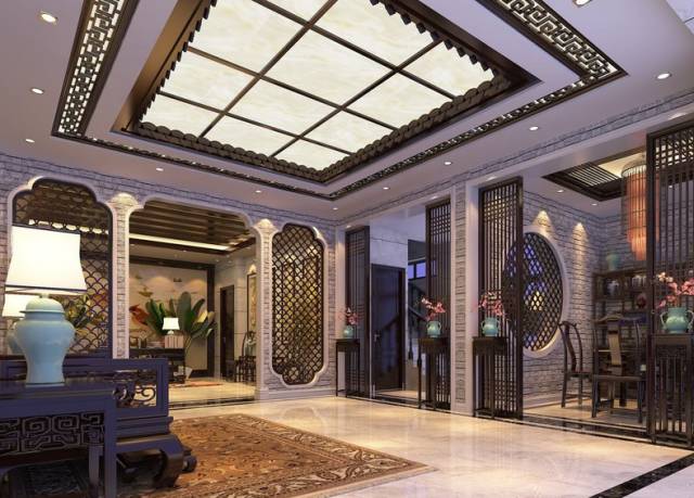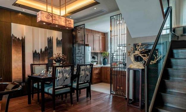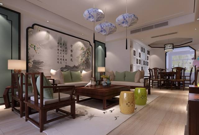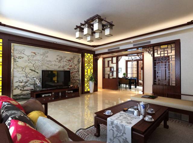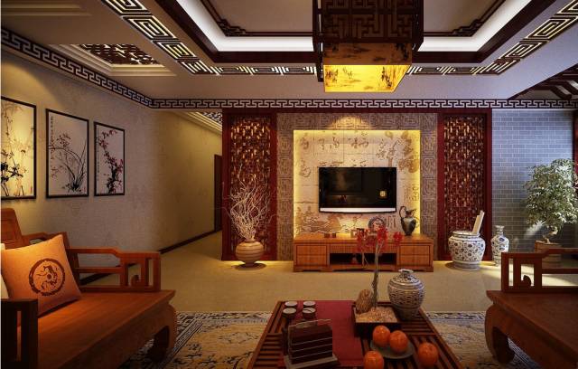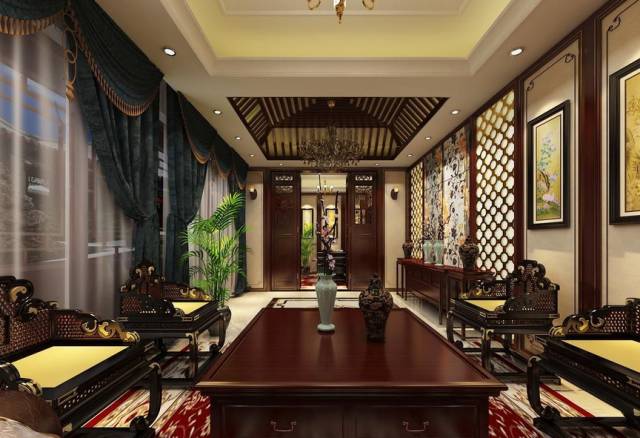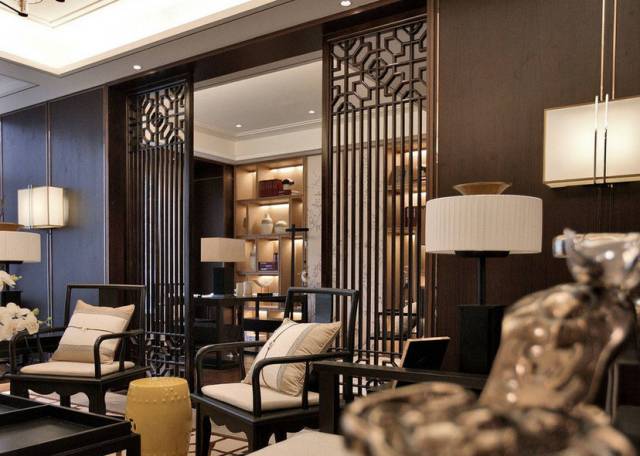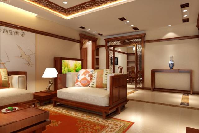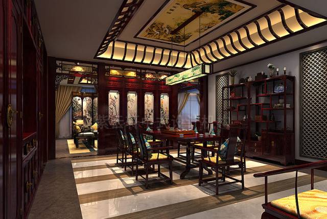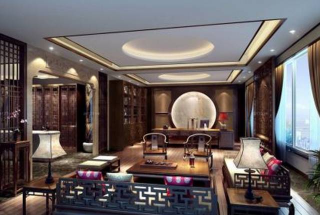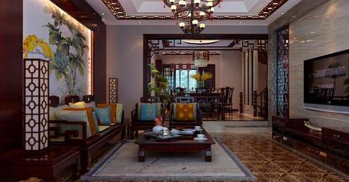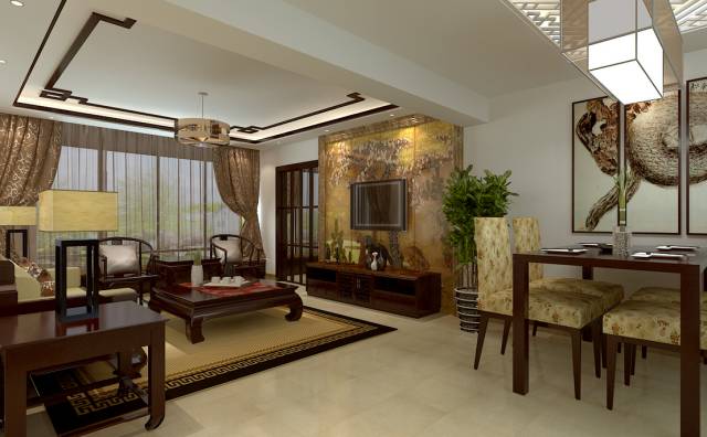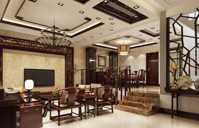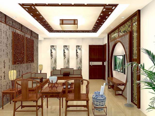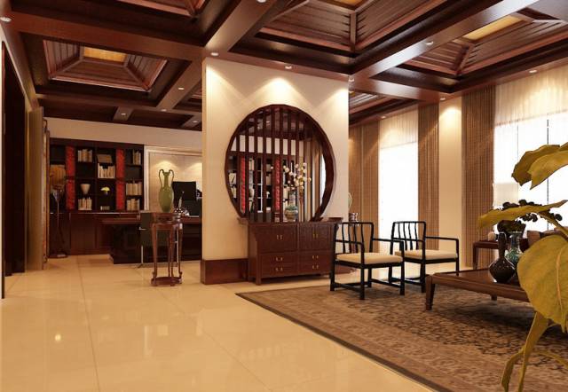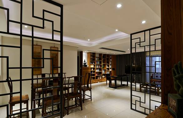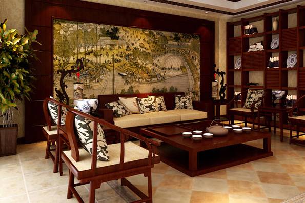 中国传统的室内设计融合了庄重与优雅双重气质。现在的中式风格中又融入了后现代手法,把传统文化、设计艺术、时尚动感和家居因素完美统一,形成了一种民族特色的标志符号。例如,厅里摆一套明清式的红木家具,墙上挂一幅中国山水画等,传统的书房里自然少不了书柜、书案以及文房四宝。