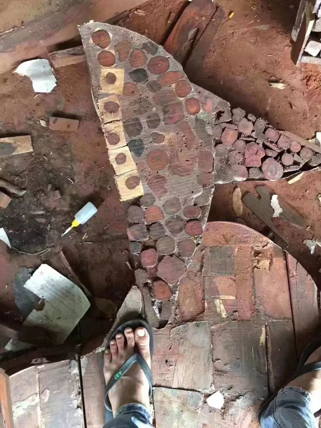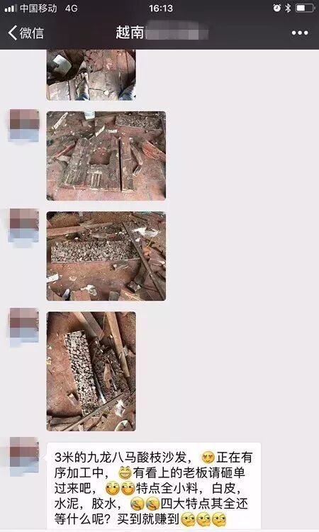 下面是一位在越南做红木家具定制(正品)的中国人,发来的越南当地某无良厂家“九龙八马”沙发生产现场照。他是气愤,也是警示: