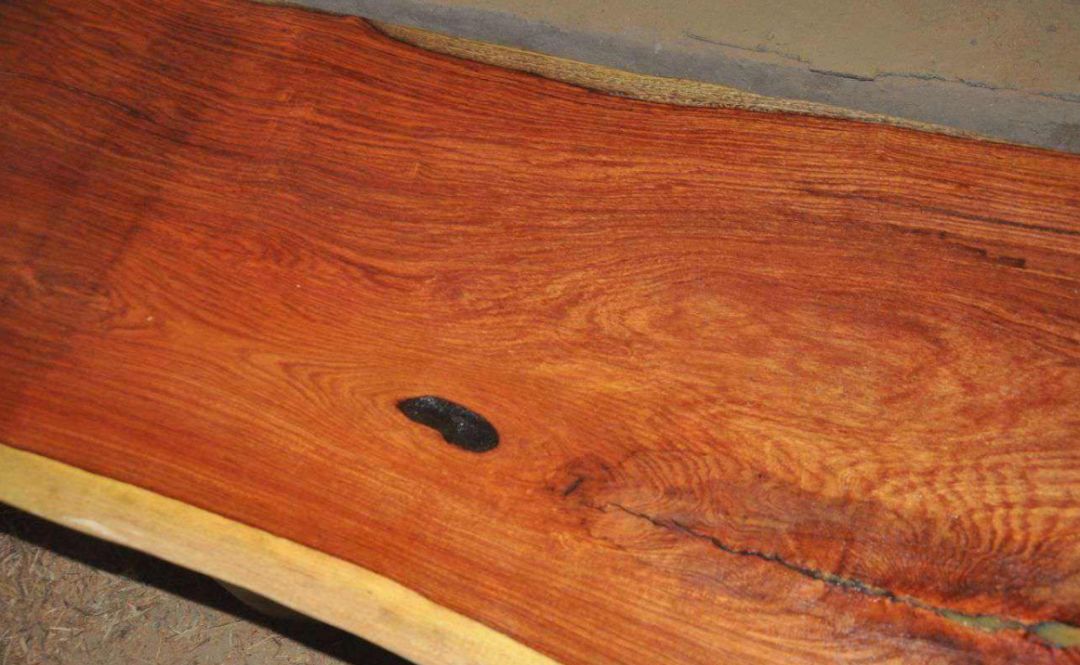 这种木材纹理近似老挝红酸枝,常见黑褐色条纹,且纹理清晰,色泽多偏橘红色,染色后很难分辨。