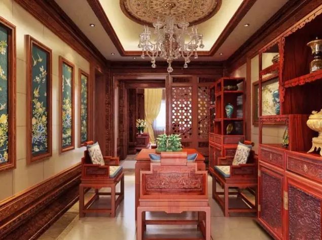 居室的四壁能量若大于红木的能量,则可在此空间中摆满红木家具。如果室内本身的能量比较弱,家具的能量又过于强大,放置太多红木家具则不利风水。