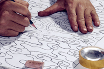 2、用打坯刀和锤子把图案的基本轮廓打出来,也就是行业中所说的“打头”,打头时要根据图案的线条粗细采用不同型号的打坯刀。