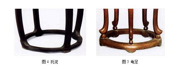 从南宋以来,托泥之下又出现了小巧的如同龟形的小足,使得整体呆板的四框之下,又长出可爱的四只小海龟这种龟足,既活泼,又起到通风的作用明代家具的椅子四腿下,常用龟足。