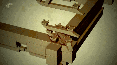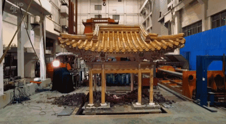 故宫专家带着外国木匠理查德一起做了个实验:按照1:5的比例,以中国古建筑榫卯和斗拱的结构,复制出一栋微缩故宫模型,并对它进行地震模拟测试。